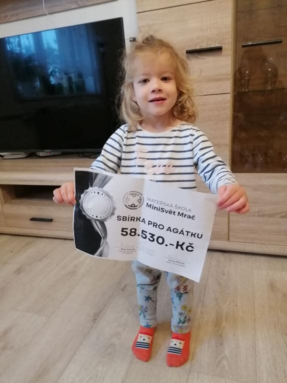 Firma Vetos s dárečky do krabice, Minisvět Mrač a pan Kucek pro naši Agátku na terapie do lázní, obec Litichovice s paní starostkou Zárubovou pro Terezku na osobní asistenci a česká módní návrhářka Zuzana Lešák Černá pro další Terezku na ergoterapie.